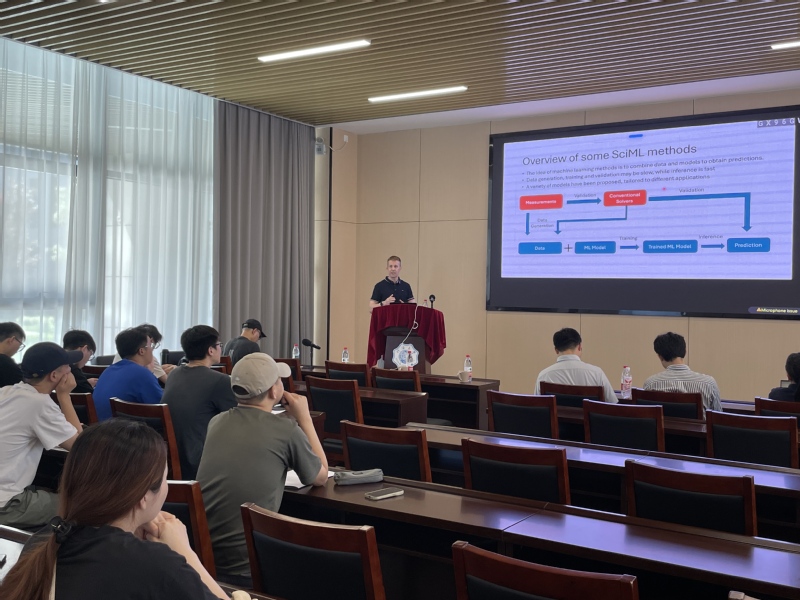 活动伊始,傅卓佳教授对Timon Rabczuk院士的到来表示热烈欢迎,并强调了人工智能技术对教育教学改革的重要推动作用,希望全体教师能够借助此次培训,拓宽教学思路,提升教学质量。随后,Timon Rabczuk院士以“科学机器学习及其在力学和工程中的应用”为切入点,展开了精彩的主题分享。